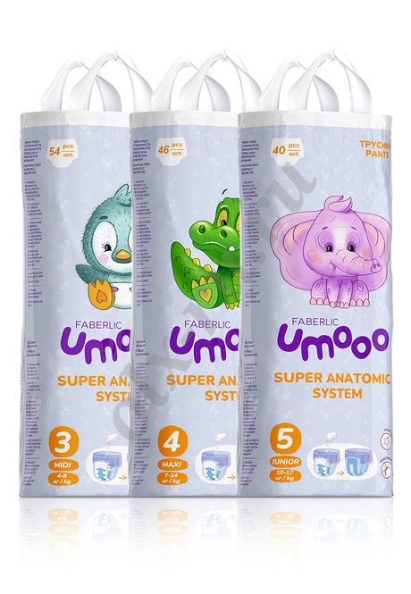 • Super anatomic system – запатентованная анатомическая форма. Для максимального комфорта ребенка абсорбент расположен полосками по краям трусиков. Благодаря такой системе середина всегда остается свободной, и при заполнении трусики не обвисают и не сковывают движения, что обеспечивает дополнительный комфорт при ношении.