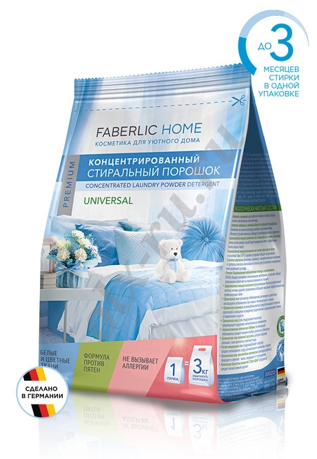 • Расходуется в 3,5 раза экономичнее обычного порошка: для стирки достаточно одной ложки! 800 г концентрированного стирального порошка «Дом Faberlic» = 3 кг обычного стирального порошка.
